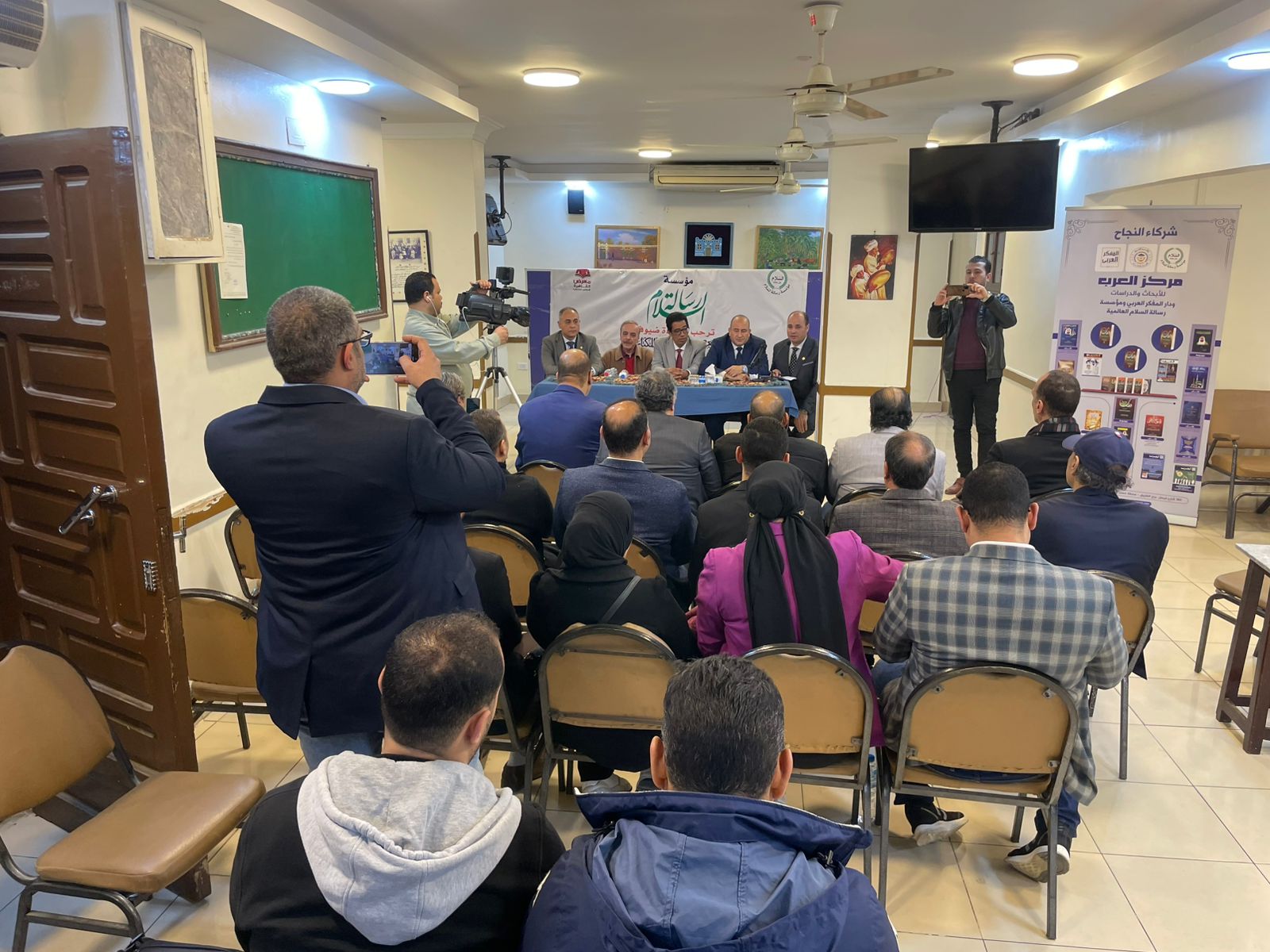 مقرر الندوة الكاتب الصحفي محمد فتحي الشريف، رئيس مركز العرب للأبحاث والدراسات، والدكتور أبو الفضل الإسنّاوي، رئيس مركز رع للأبحاث والدراسات، والدكتور محمد يحيى غيدة، نائب رئيس مركز العرب للأبحاث والدراسات