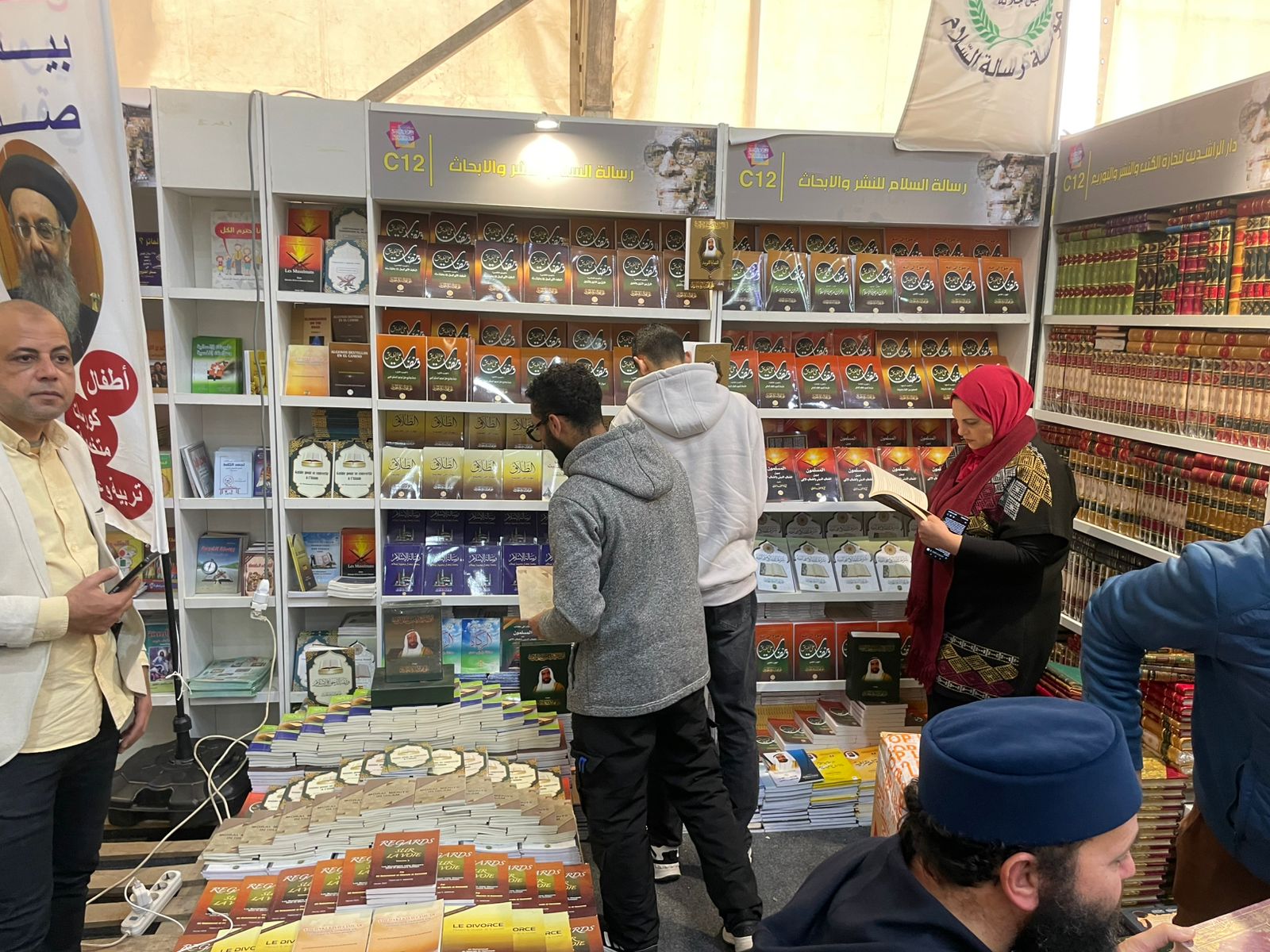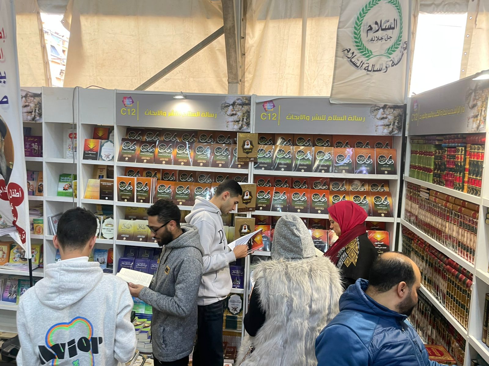 بين أروقة معرض القاهرة الدولي للكتاب .. ووسط زحمة الإصدارات والقصص والأفكار .. يسطع جناح مؤسسة " رسالة السلام " كمنارة فكرية تتحدى التيارات المتطرفة .. بما يحويه من أفكار ورؤي تعيد الأمل للعقل العربي .