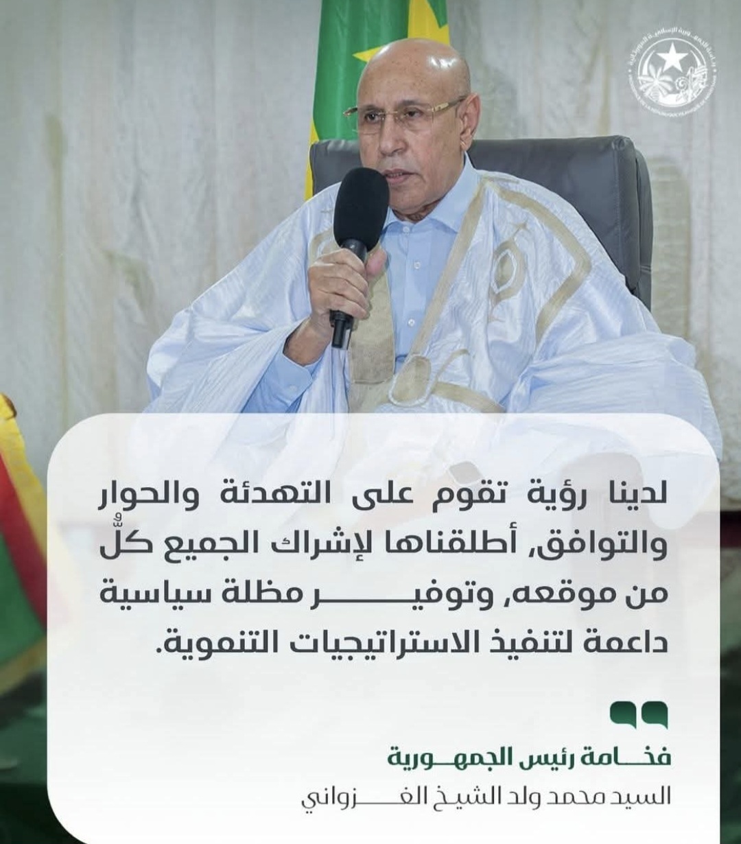 تقوم فلسفة فخامة رئيس الجمهورية السيد محمد الشيخ الغزواني، على فكرة محورية هي رباط المواطنة. هذا المفهوم لا يقدم كشعار سياسي فقط، بل كقاعدة لتنظيم العلاقة بين الدولة والمجتمع، وبين الأفراد أنفسهم.