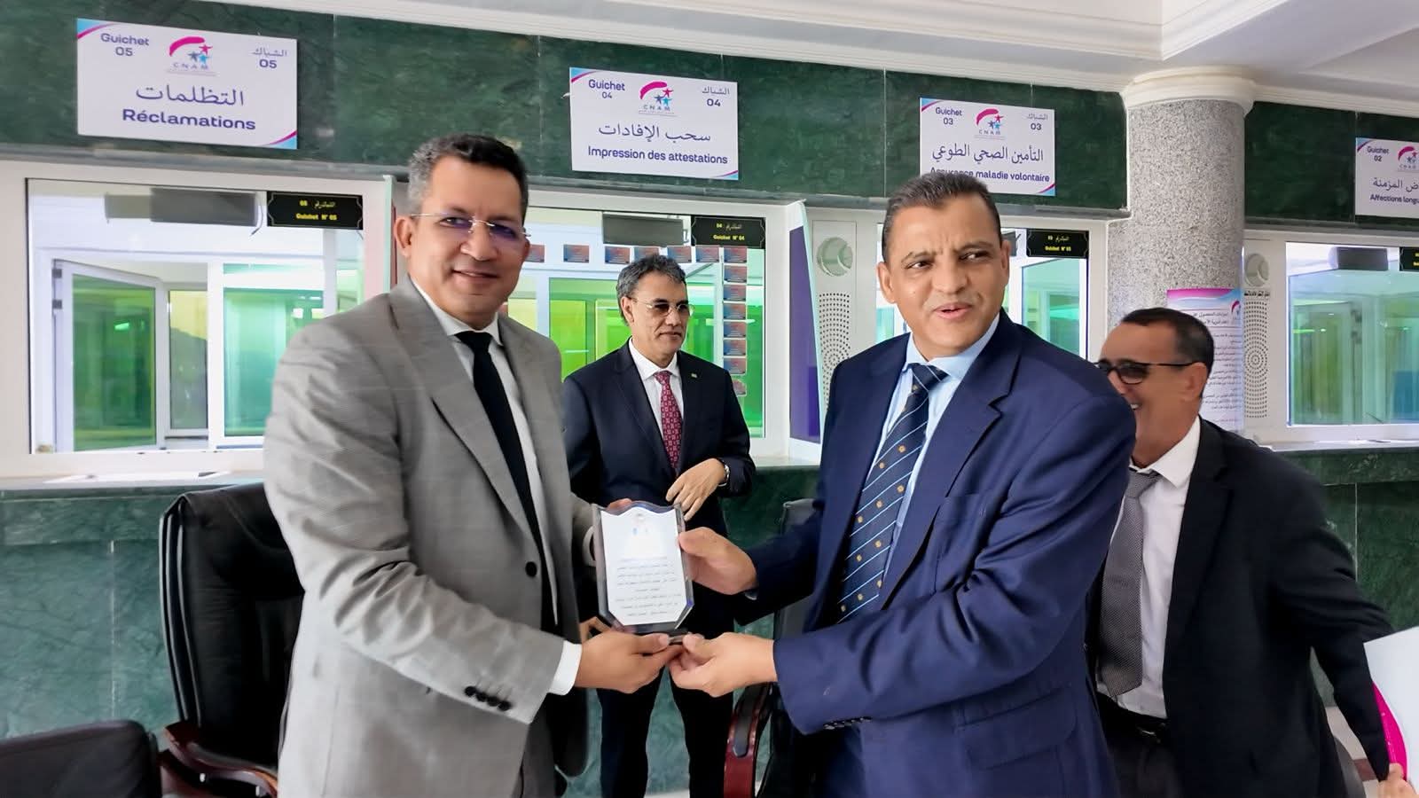 شهدت قاعة الاجتماعات بالمقر الرئيسي للصندوق الوطني للتأمين الصحي، اليوم 20 فبراير 2026، مراسم تبادل المهام بين المدير العام السابق، السيد محمد محمود ولد جعفر، والمدير العام الجديد، السيد محمد ولد أحمد سالم ولد محمد راره، بحضور المدير العام المساعد البرفسير، محمد محمود ولد الحسن و الأمين العام السيد، سيد محمود ولد زيدان، و الطاقم الإداري للمؤسسة ، في أجواء طبعتها روح الامتنان والمسؤولية.