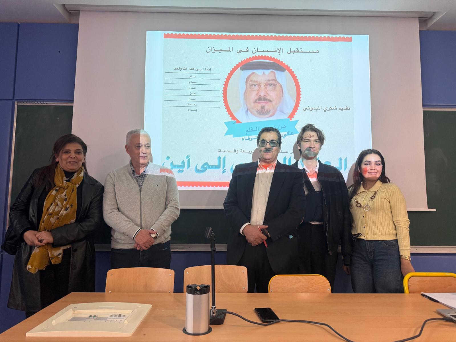 وخلال اللقاء ألقى الدكتور شكري الميموني كلمة حول الوضع السياسي العالمي وأهمية التركيز على وحدة الرسالات السماوية مستلهما كتابات الكاتب والمفكر الأستاذ علي محمد الشرفاء التى تستهدف التقريب بين الشعوب والمجتمعات من أجل إحلال السلام