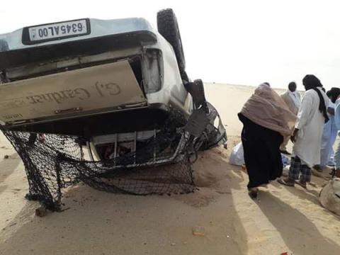 تداول نشطاء علي مواقع التواصل الاجتماعي صور لحادث سير مروع وقع عند الكلمتر 110 على الطريق الرابط بين نواذيبو العاصمة وانواكشوط