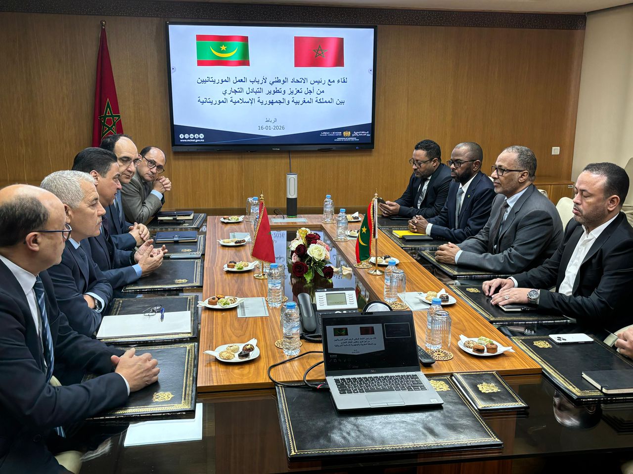 التقى رئيس الاتحاد الوطني لأرباب العمل الموريتانيين، السيد محمد زين العابدين ولد الشيخ أحمد، اليوم في العاصمة المغربية الرباط، بوزير التجارة الخارجية المغربي، السيد عمر حجيرة، بحضور المدير العام للجمارك وعدد من معاوني الوزير، وبرفقة وفد من الاتحاد.