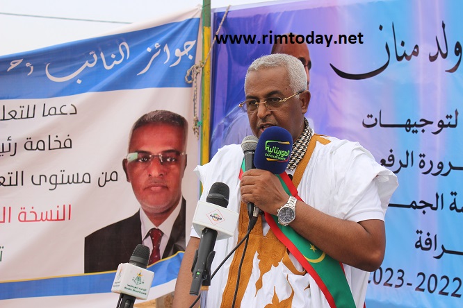 وأوضح النائب أبو المعالي ولد منان أن الجائزة تندرج، كذلك، ضمن الحرص على تكريم المتفوقين من المؤطربن والمدرسين والتلاميذ؛ تقديرا لجهودهم الرامية إلى الرفع من مستوى التعليم في عموم مقاطعة مقطع لحجار.