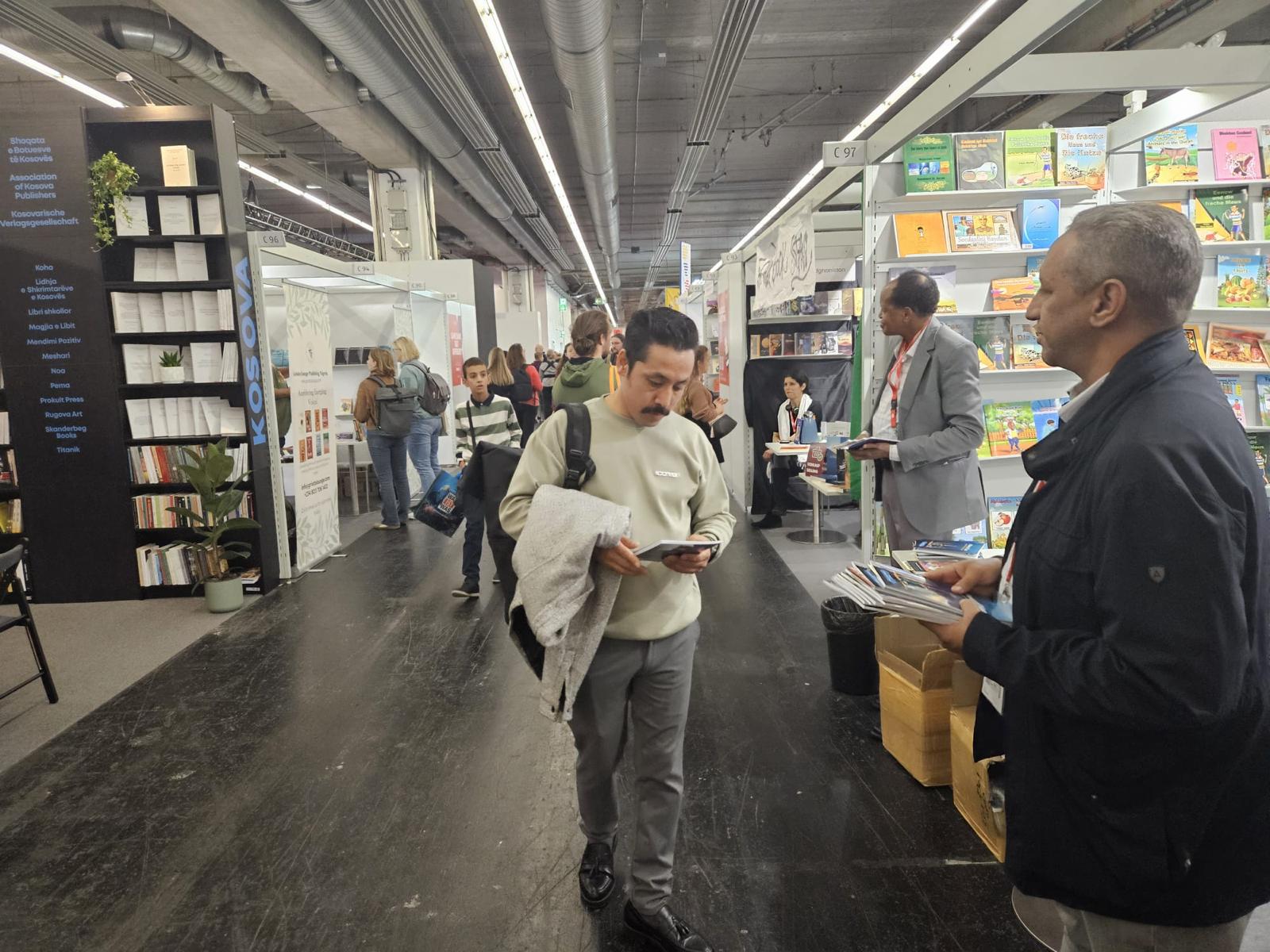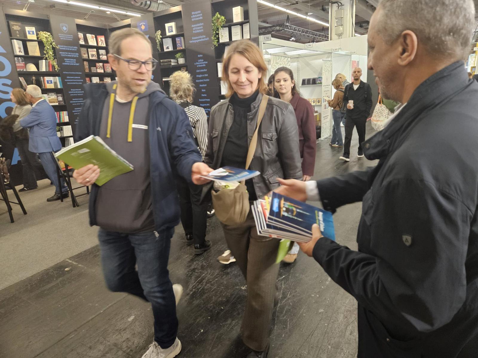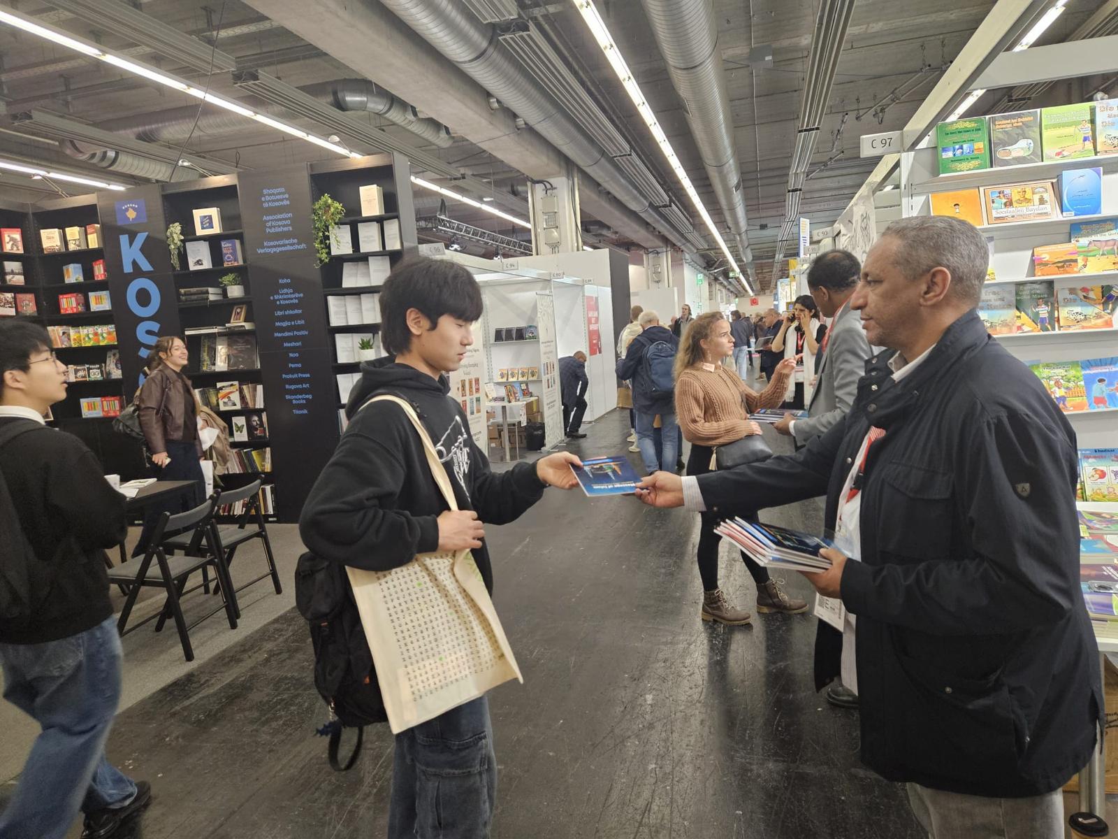 يواصل الحاج محمدالامين رئيس مكتب إسبانيا رفقة مسؤلي مكتب المانيا توزيع منشورات مؤسسة رسالة السلام للمفكر العربي الكبير على محمد الشرفاء الحمادي في معرض فرنكفورت للكتاب 2025 حيث الإقبال الكبير على فكر المؤسسة، ويشهد جناح مؤسسة السلام في المعرض اقبالا كبيرا من طرف زوار المعرض من مختلف الجنسيات العالمية.