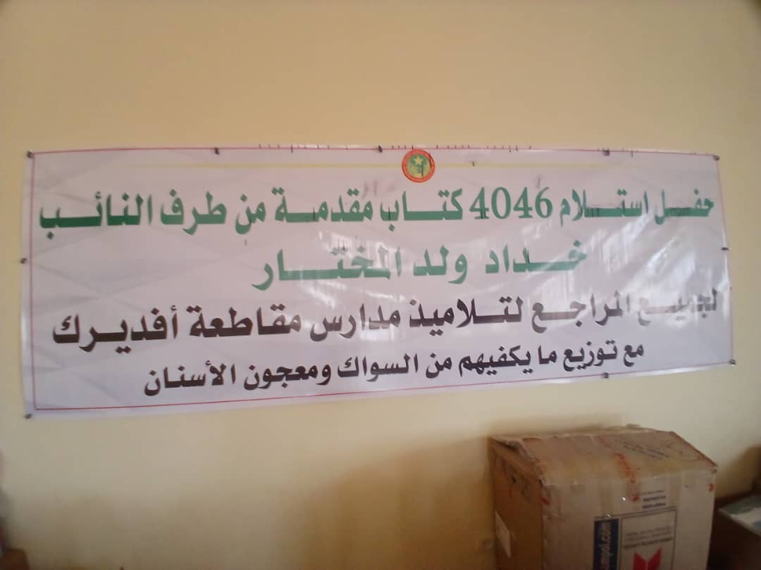 الأخبار ميديا: بإشراب من السلطات الإدارية والتربوية، أطلق نائب مقاطعة أفديرك، السيد خداد ولد المخطار، صباح اليوم، مبادرة تربوية واجتماعية شملت توزيع الكتب المدرسية ومواد النظافة على تلاميذ المؤسسات التعليمية في المقاطعة، وذلك من مباني مفتشية التعليم الأساسي وإصلاح التهذيب.