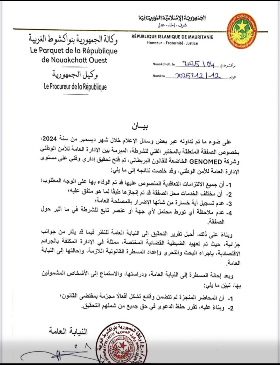 أصدر القضاء الموريتاني، اليوم، حكماً يقضي بتبرئة الوزير السابق سيدي ولد ديدي والصحفي أحمد ولد الشيخ من التهم المتداولة في ما يعرف إعلامياً بملف مختبر الشرطة.