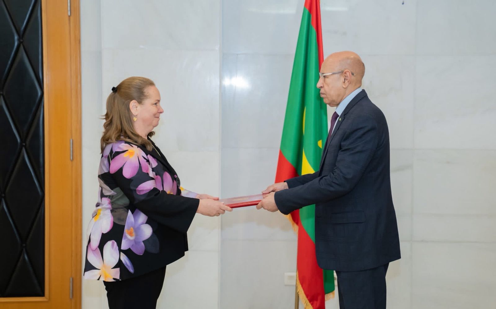 وشملت مراسم الاعتماد سفيرة إيطاليا باولا كريستينا روسو، وسفيرة كندا إيزابيل فالوا، التي تشرف من الرباط على العلاقات مع موريتانيا، إضافة إلى سفير الهند نيرجا أغر أوال، أول سفير مقيم لبلاده في نواكشوط، وسفير اليابان أوتشيدا هيرويوكي.