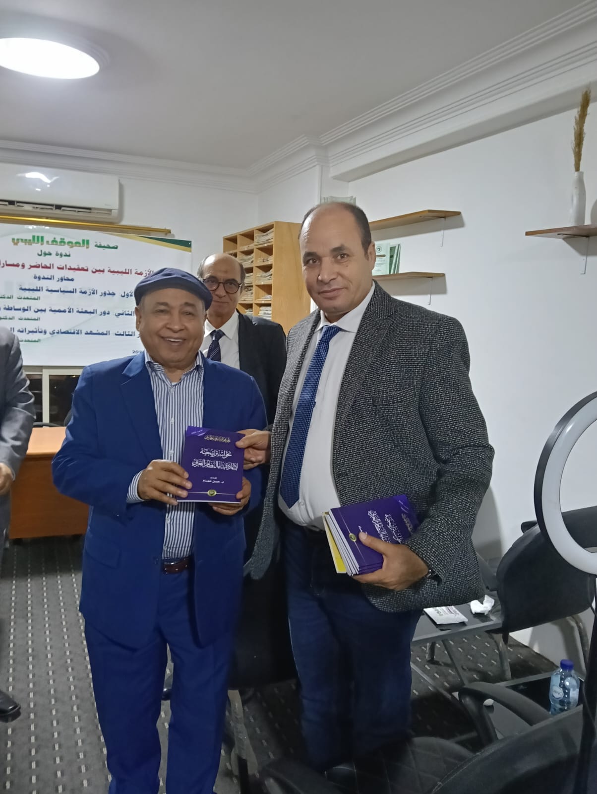 بتسليم مجموعة من مؤلفات المفكر العربي الاستاذ على محمد الشرفاء الحمادي إلى السفير صلاح حليمة، مساعد وزير الخارجية الأسبق للشئون الإفريقية، ونائب رئيس المجلس المصري للشؤون الخارجية، ونائب رئيس مبادرة إسناد السودانيين المتأثرين بالحرب.